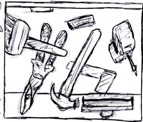 Despite my choice of format for my line drawing, I think the more successful ones were wider aspect ratios. These could clearly show off more of the bench and a variety of extra tools without sacrificing the message or becoming too cluttered and unclear. In retrospect, I think my second thumbnail sketch would have been an interesting alternative to explore in this regard.
